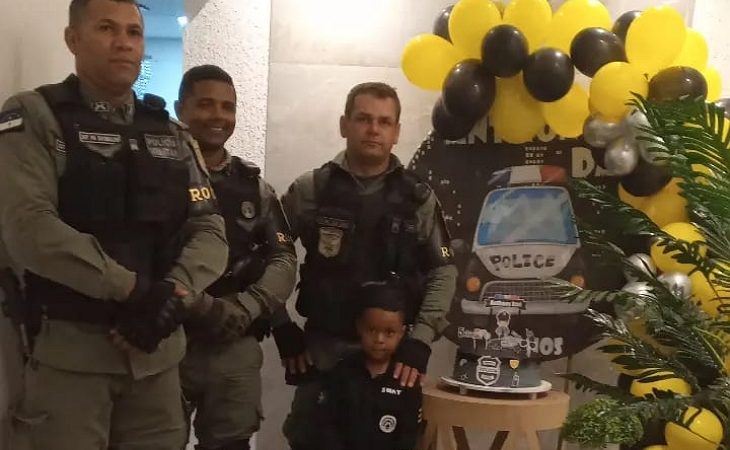 Policiais da ROCAM do 9ºBPM fizeram uma surpresa ao pequeno Anthony Davi, que completou 5 anos de idade nesta terça-feira (14). Os rocanianos foram recebidos com muita emoção pelos familiares de Anthony que tem o sonho de ser policial. A surpresa aconteceu na residência da família no Vale do Mundaú. Antonhy conheceu os policiais, recebeu presentes e ainda pôde ver de perto como funciona o trabalho policial. Parabéns ao garotinho e aos policiais que além LER NOTÍCIA