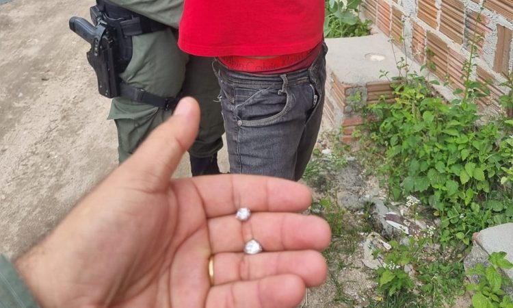 Na tarde desta segunda-feira (1º), policiais militares que realizavam rondas nas proximidades do Lajeiro, na Rua Dodô Garoba, em Águas Belas, flagraram um indivíduo conhecido do efetivo por diversas passagens relacionadas à posse de entorpecentes. Ele estava em uma bicicleta, saindo de uma área já identificada como ponto de tráfico. Ao perceber a presença da viatura, o suspeito foi visto arremessando alguns objetos que estavam em sua boca. Os policiais deram ordem de parada, mas LER NOTÍCIA