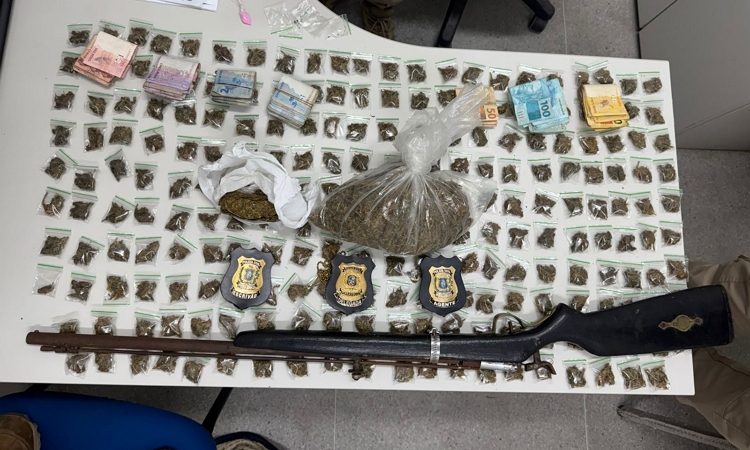 Um traficante foi preso em flagrante nesta quarta-feira (8) durante uma ação da Polícia Civil no município de Águas Belas, no Agreste de Pernambuco. A operação foi realizada por agentes da Delegacia de Águas Belas, sob coordenação da delegada Jaqueline Alves. De acordo com a polícia, a prisão ocorreu após investigações preliminares apontarem que o suspeito, conhecido pelo vulgo de “Guloso”, estaria comercializando entorpecentes na localidade conhecida como Rua do Sertão. Durante o trabalho de LER NOTÍCIA