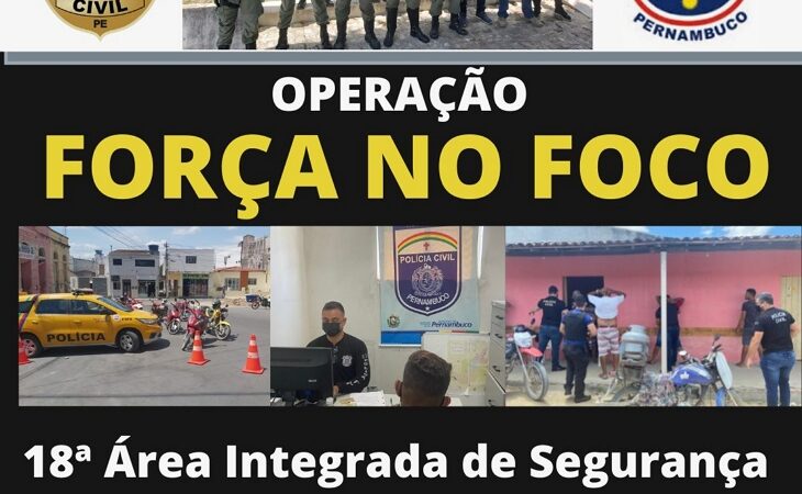 A Polícia Civil e a Polícia Militar, por meio da 18ª Delegacia Seccional de Garanhuns e do 9º Batalhão de Polícia Militar de Garanhuns, deflagraram nesta quinta-feira (10), na cidade de Águas Belas, a Operação Força no Foco, ação que teve como objetivo combater os crimes de roubo, homicídios e violência contra a mulher. A operação contou com a participação de 17 policiais civis entre: Delegados, Comissários, Agentes e Escrivães e 40 Policiais Militares entre: LER NOTÍCIA