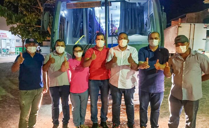 Pacientes com tratamento em Recife comemoraram a entrega do novo ônibus do Tratamento Fora de Domicílio (TFD) para condução à capital pernambucana. O ônibus fez sua primeira viagem na noite desta segunda (18), e o prefeito Luiz Aroldo acompanhou o embarque junto com os secretários Bruno (Saúde), Maurício (Governo) e a coordenadora do TFD Recife, Cristiane da Saúde.