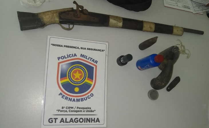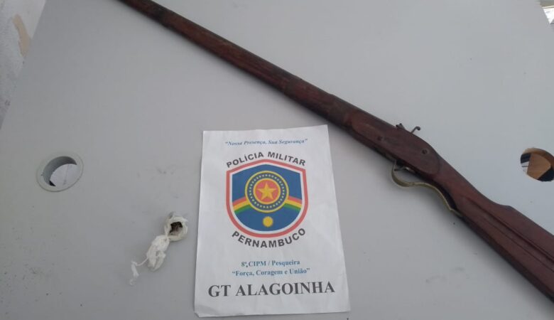 Um homem foi preso e uma espingarda apreendida pela Polícia Militar na manhã desta segunda-feira (19), na zona rural do município de Alagoinha, no Agreste de Pernambuco. O elemento conduzia um veículo em alta velocidade na estrada do distrito de Perpétuo Socorro, quando foi abordado pelos militares. Na consulta criminal foi descoberto que contra ele existia um mandado de prisão expedido no ano de 2018 pela prática de homicídio. Ele foi levado para delegacia de LER NOTÍCIA