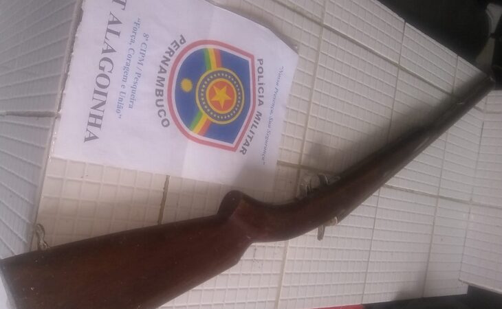 Uma espingarda foi apreendida pela Polícia Militar na tarde desta quarta-feira (26), no Sítio Canga, na zona rural da cidade de Alagoinha, no Agreste de Pernambuco. A PM informou que um homem estava andando com a arma por uma estrada vicinal, ele conseguiu fugir entrando em uma mata fechada e abandonou a espingarda, ela foi entregue na delegacia de Polícia Civil do município que adotou as medidas cabíveis.