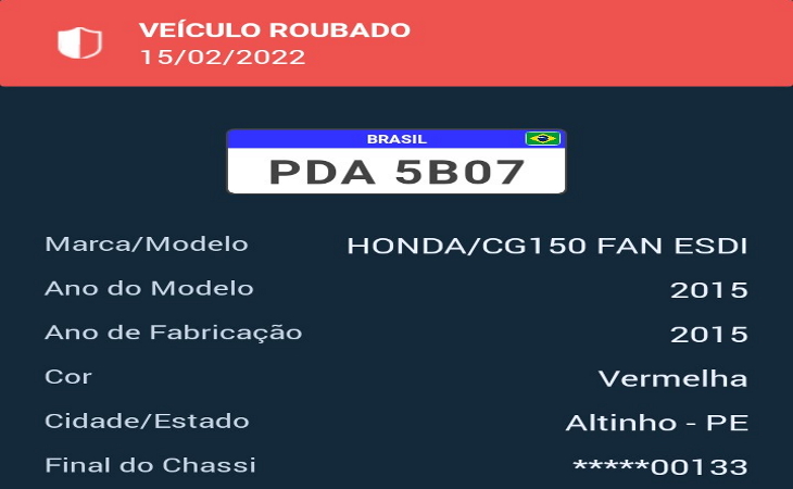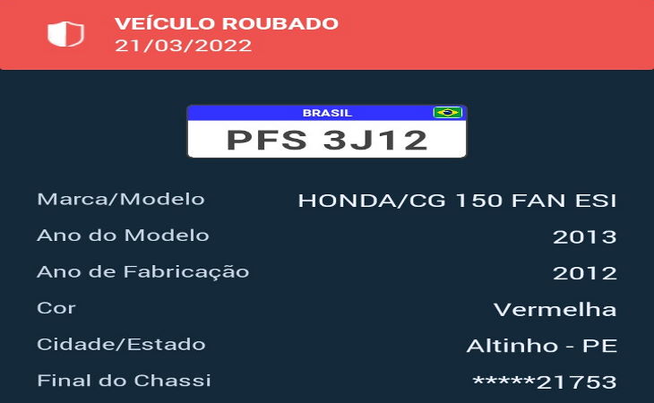 Uma mulher teve a motocicleta tomada de assalto por volta do meio-dia de sexta-feira, 7, quando trafegava pela PE-149, imediações do Sítio Mandioca, em Altinho. O veículo roubado tem placa KGE-6085, cor vermelha e modelo Biz 125. Além da moto também foram roubados documentos e objetos pessoais, aparelho celular e dinheiro. Segundo à vítima, no momento que trafegava pela rodovia, foi rendida por criminosos numa moto, o passageiro portava um revólver e anunciou o assalto. LER NOTÍCIA
