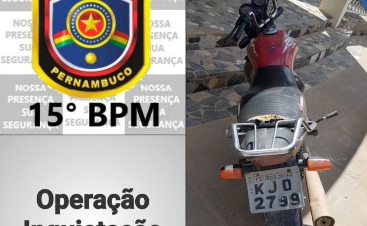 Policiais do 15º BPM aprenderam uma motocicleta CG 125 Titan KS que estava com queixa de roubo. O veículo estava abandonado no bairro Santo Antônio, em Belo Jardim, nesta quinta-feira, 30. De acordo com a polícia, a Central de Operações do Batalhão foi informada sobre o abandono do veículo, com a chegada dos policiais ao local foi percebido que a motocicleta estava com o chassi raspado, mesmo assim foi possível sua identificação. A motocicleta foi LER NOTÍCIA