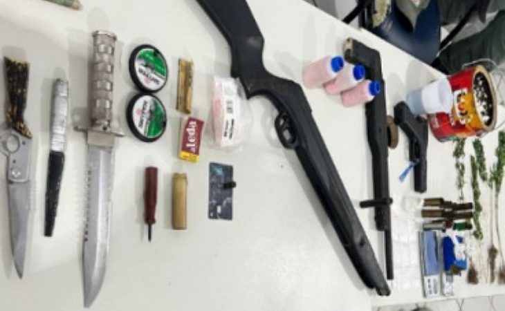 Policiais militares do 24 BPM, após uma denúncia de ameaça feita pela vítima contra seu ex-companheiro, localizou o suspeito em Fazenda Nova, em Brejo da Madre de Deus, na sexta-feira (16). Com ele foram encontrados entorpecente, simulacro de pistola, arma de airsoft, punhal e munições. O indivíduo e todo o material foram conduzidos para a delegacia de Polícia Civil para adoção das medidas legais cabíveis.