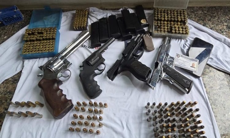 Um homem foi detido, no início da tarde deste domingo (31), por portar um arsenal de armas em seu veículo, em Condado. Ao notar uma manobra brusca do condutor, policiais militares do BPRv realizaram a abordagem. Em uma sacola, o efetivo localizou nada menos que dois revólveres calibre 38, uma pistola 45mm e outra 9mm, seis munições 45mm, 93 munições calibre 38, 26 munições calibre 357 e 26 munições calibre 9mm. O suspeito se identificou LER NOTÍCIA