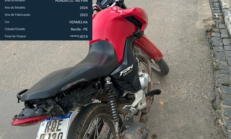 Veículo apresentava sinais adulterados e tinha restrição de roubo. Na tarde da quarta-feira, 13/8, por volta das 17h30, a Polícia Militar recuperou uma motocicleta com registro de roubo e apreendeu um adolescente de 16 anos na PE-85, em Cortês, Zona da Mata Sul de Pernambuco. (Outras Imagens) Durante abordagens de rotina, o efetivo identificou uma Fan 160 vermelha, placa RQE-0J20, circulando em desacordo com as normas de trânsito. Na vistoria, foram constatados sinais identificadores adulterados. LER NOTÍCIA