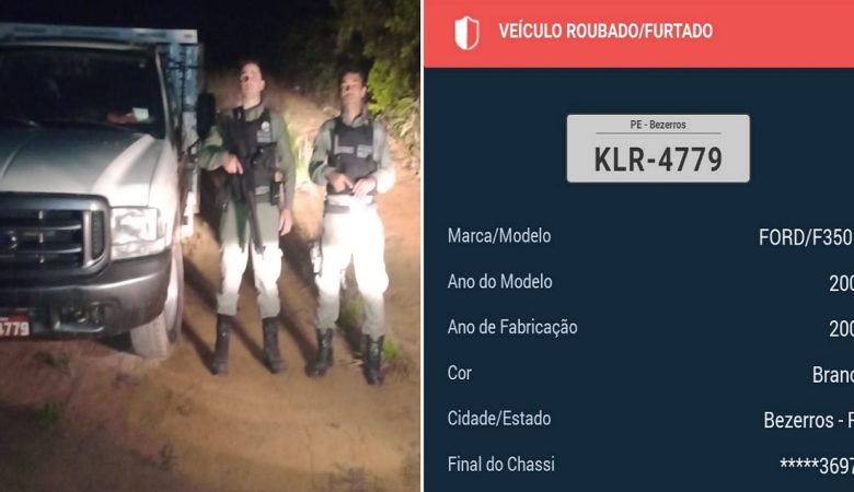 A polícia militar apreendeu um caminhão modelo F-250, de cor branca, com a placa KLR-4779. Ele foi localizado no fim da tarde de quinta-feira, 15, no Engenho Novo Jardim, em Cortês/PE. Segundo a polícia, os policiais receberam informações sobre um veículo roubado que estava nas proximidades do Engenho Novo Jardim. Diante dessas informações, diligências foram realizadas na zona rural, resultando no êxito da operação, com a localização do veículo às margens de uma estrada próxima LER NOTÍCIA