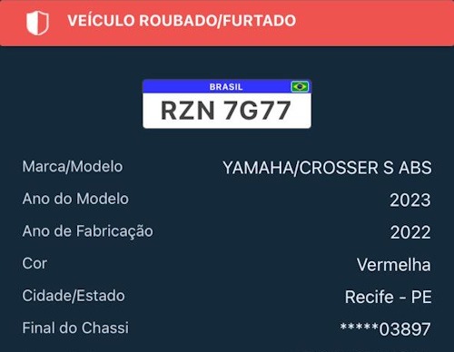 A polícia militar apreendeu uma motocicleta Crosser 150 de cor vermelha, com placa RZN-7G77, a qual estava com restrição de roubo/furto. Ela foi localizada nas proximidades de um bloco carnavalesco que estava na Praça da Bíblia, no centro de Cortês na noite de sexta-feira, 9. De acordo com a polícia, após consultar algumas placas de motocicletas estacionadas naquelas imediações, foi constatado que esta motocicleta continha uma queixa-crime. Posteriormente, o suposto proprietário se aproximou do policiamento, LER NOTÍCIA