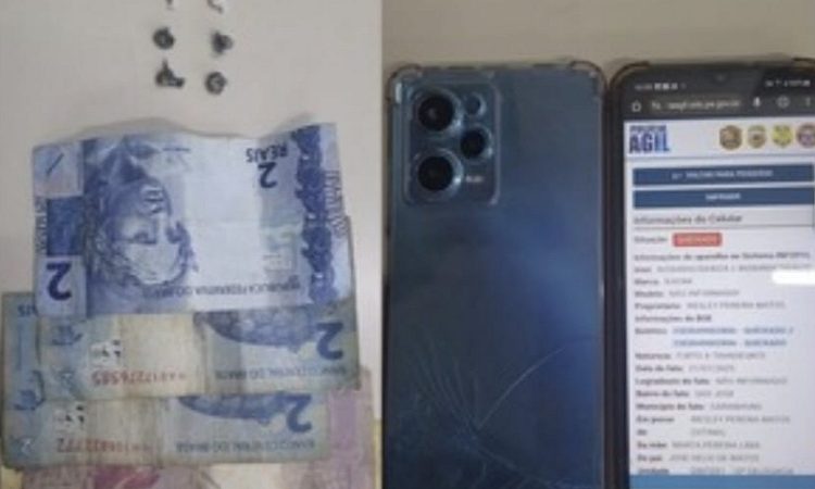 Policiais do GATI do 9º BPM apreenderam drogas e um celular roubado durante abordagem realizada na tarde desta terça-feira (2), no Mercado 18 de Agosto, em Garanhuns, no Agreste de Pernambuco. Durante a ação, os militares encontraram 07 pedras de crack e a quantia de R$ 31,00 com uma mulher. Ao ser questionada, ela assumiu ser proprietária do entorpecente, alegando que seria para consumo. No entanto, ao realizar consulta no sistema Polícia Ágil, os policiais LER NOTÍCIA