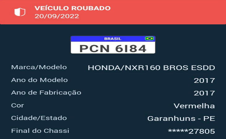 Uma motocicleta foi furtada quando estava estacionada na Rua Antônio Lacerda, ao lado da igreja Assembleia de Deus, no Centro de Garanhuns. A ação criminosa ocorreu na manhã deste sábado 7. A moto furtada tem placa DNX-6970, modelo CG 125 Fan na cor cinza. O cidadão acionou a polícia e relatou que deixou a moto estacionada no local, porém, logo que retornou ela não estava mais. Ainda pela manhã, um táxi foi tomado de assalto LER NOTÍCIA