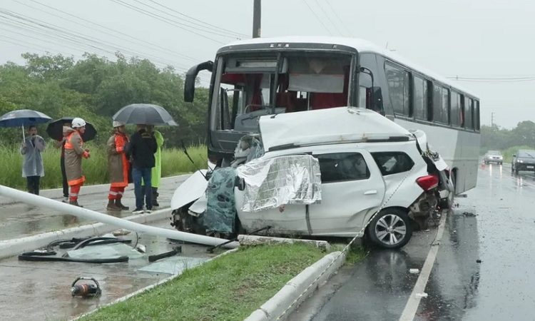 Uma colisão envolvendo um ônibus e um carro de passeio resultou na morte de duas pessoas na rodovia PE-09, principal acesso a Porto de Galinhas, no município de Ipojuca, no Grande Recife. O acidente ocorreu por volta das 7h da manhã do domingo (12). De acordo com informações, o carro seguia no sentido distrito de Nossa Senhora do Ó quando o motorista perdeu o controle da direção, invadiu a contramão e colidiu frontalmente com o LER NOTÍCIA