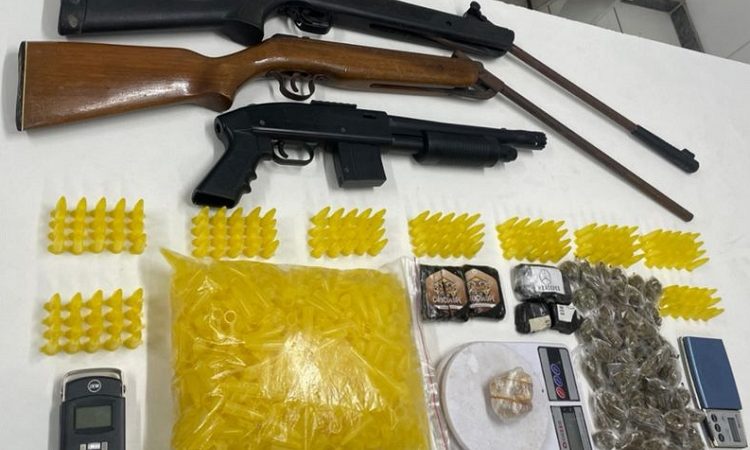 Policiais militares do 6º BPM apreenderam uma grande quantidade de entorpecentes e armas na tarde desta segunda-feira (22), durante rondas no bairro Jardim Jordão, em Jaboatão dos Guararapes, na Região Metropolitana do Recife. De acordo com a PM, a ação teve início após denúncias de populares sobre tráfico em via pública, na Rua Mossoró. Com base nas informações, a equipe montou um cerco para abordar o suspeito, que, ao perceber a aproximação, fugiu do local. LER NOTÍCIA