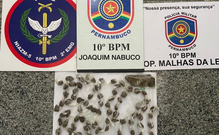 Policiais militares da cidade de Joaquim Nabuco, na Mata Sul pernambucana, apreenderam certa quantidade de maconha, no início da tarde deste sábado, 23. Não ocasião foi preso o Eduardo José da Silva, suspeito de estar vendendo o entorpecente na localidade conhecida como Carecão. Ainda Segundo a polícia, foi obtido informações através do Serviço de Inteligência que havia um elemento vendendo droga na referida localidade. Diante das informações, equipes policiais foram designadas para verificar o conteúdo LER NOTÍCIA