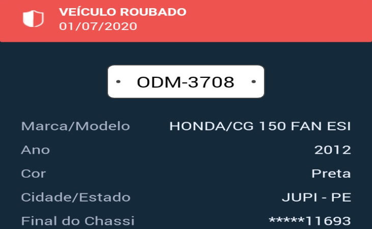 Uma moto foi tomada de assalto na noite desta quinta-feira (2), na Praça do Rosário, no centro de Jupi, no Agreste de Pernambuco. A vítima informou a polícia que estava indo à farmácia, parou para falar com um amigo, quando chegaram três elementos em um veículo Parati, dois desembarcaram, anunciaram o assalto e fugiram levando a moto Honda Biz, cor vermelha, ainda sem placa. A vítima comunicou o roubo a polícia e até o momento LER NOTÍCIA