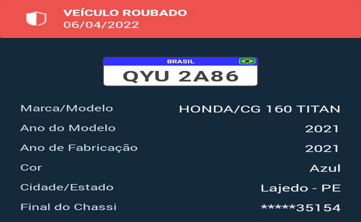 Uma moto roubada foi encontrada por um popular na manhã desta quarta-feira (10), no loteamento Água Viva, no município de Lajedo, no Agreste de Pernambuco. Com apoio da Guarda Patrimonial a Polícia Militar conduziu a moto para delegacia de Polícia Civil, onde foram adotadas as medidas cabíveis para devolução ao proprietário.