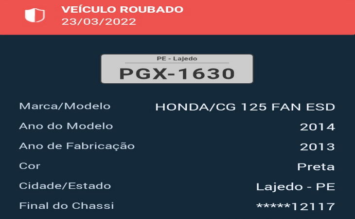 Uma moto tomada de assalto na manhã desta quarta-feira (27), no bairro Bom Jesus, na cidade de Lajedo, foi recuperada no Sítio Ouricuri, na zona rural da cidade de Cachoeirinha. O cidadão vítima procurou a sede da 11ª CIPM e os militares de serviço montaram uma operação e após alguns minutos encontraram a moto. O assaltante não foi encontrado, no momento do assalto ele portava uma pistola e deixou outra moto também roubada no local. LER NOTÍCIA