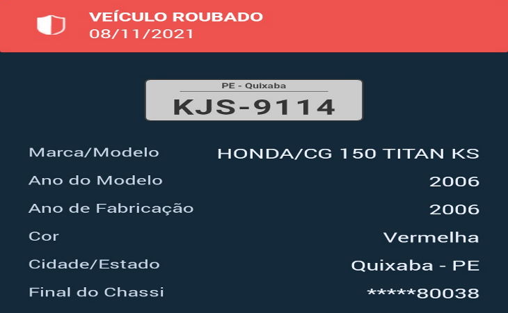 Vítima disse que foi agredida para poder entregar sua moto aos ladrões. Uma motocicleta Titan vermelha de placa KJS-9114 foi tomada de assalto na zona rural do município de Lajedo, na manhã de domingo, 7,. O motociclista disse à polícia que foi abordado por dois elementos que estavam em outra moto e armados com uma espingarda e um revólver. Os criminosos ainda lhe agrediram para que entregasse o veículo. Ainda segundo a vítima, os ladrões LER NOTÍCIA