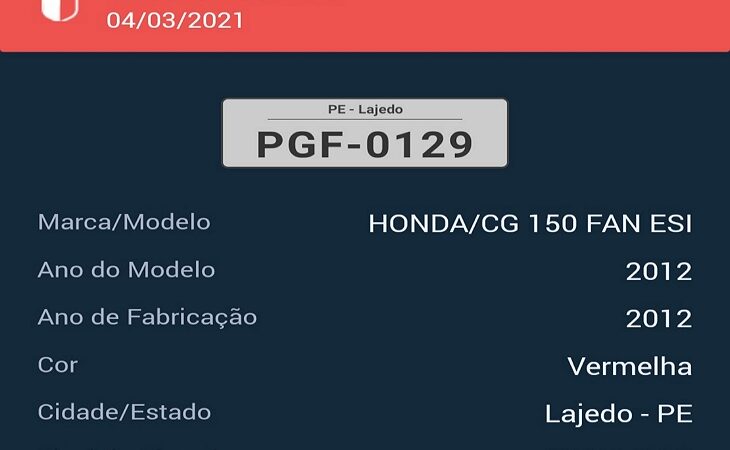 Um trabalhador teve sua moto Honda CG-125, cor preta, placa KJZ-3305, furtada na manhã desta quarta-feira (10), na feira do CEALA, no município de Lajedo, no Agreste de Pernambuco. A vítima informou que deixou a motocicleta travada e foi para o trabalho, ao retornar cerca de duas horas depois o veículo tinha sido furtado. Até o momento a moto não foi localizada.