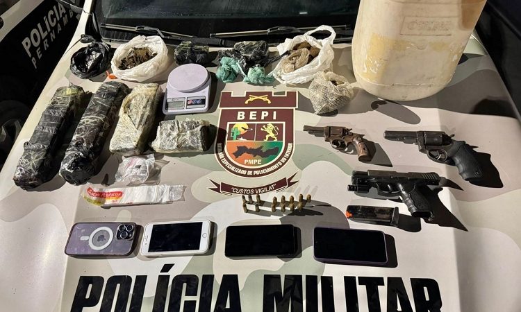 Uma equipe do Batalhão Especializado de Policiamento do Interior (BEPI) realizou, na manhã desta segunda-feira (15), uma operação no município de Lajedo, no Agreste de Pernambuco, que resultou na prisão de cinco indivíduos e na apreensão de um menor de idade. A ação foi desencadeada no combate aos crimes de tráfico de entorpecentes, porte ilegal de armas de fogo e munições, além de corrupção de menor. Durante a abordagem, os policiais encontraram em posse do LER NOTÍCIA