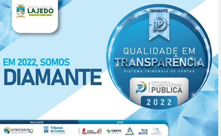 A CONTROLADORIA GERAL em conjunto com os demais órgãos da Prefeitura Municipal de Lajedo comemoram o RECEBIMENTO DO SELO DIAMANTE que atesta o NÍVEL MÁXIMO DE TRANSPARÊNCIA que um órgão ou entidade pública pode receber. Ao todo foram fiscalizados 374 ÓRGÃOS E ENTIDADES, entre prefeituras, tribunal de justiça, câmaras municipais, defensoria pública e assembleia legislativa, APENAS O MUNICÍPIO DE LAJEDO, DENTRE OS 374 ORGÃOS MONITORADOS, Ministério Público e o próprio Tribunal de Contas conseguiram ATINGIR LER NOTÍCIA