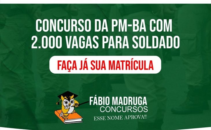 Foi publicado na última quarta-feira (28), o edital do concurso da Polícia Militar do Estado da Bahia, destinado a preencher 2.000 vagas de soldado com salário de até R$ 4.012,11. As inscrições terão início às 10h de 13 de outubro, oferece 1.700 postos para homens e 300 para mulheres. Os requisitos para quem pretende concorrer incluem: • ensino médio completo; • idade entre 18 e 30 anos; • altura mínima de 1,55m LER NOTÍCIA
