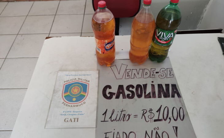 A venda do produto era anunciada através de cartaz. Uma mulher foi levada à delegacia de polícia na cidade de Pesqueira nesta segunda-feira, 06, ao anunciar, através de cartaz, à venda de gasolina no valor de R$ 10,00 o litro do combustível. De acordo com a Polícia Militar, a equipe do GATI através de levantamentos realizados pelo NIAZM-3 e equipe Malhas da Lei, realizaram deslocamento até a Aldeia Caldeirão, a fim de averiguar um possível LER NOTÍCIA