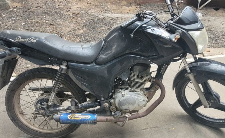 Veículo foi localizado durante abordagem na zona rural de Pesqueira. Policiais militares da 8ª CIPM apreenderam uma motocicleta por volta das 17h de terça-feira, 17, durante uma abordagem no Distrito de Mutuca, em Pesqueira. O veículo estava com as numerações do chassi e motor pinadas. De acordo com a polícia, a equipe de ROCAM realizava rondas quando visualizou o veículo suspeito, o qual chamou a atenção do efetivo por estar sem placa. Em seguida o LER NOTÍCIA