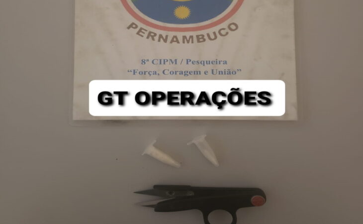 Policiais militares da 8ª CIPM apreenderam dois pinos de cocaína que estavam na posse de um elemento abordado nesta terça-feira, 1, em Pesqueira. Segundo a polícia, a apreensão ocorreu durante a realização da “Operação Esteio” na cidade de Pesqueira, no momento que os policiais notaram a atitude suspeita do indivíduo ao avistá-los. Desta maneira, foi procedida busca pessoal, sendo encontrado o entorpecente dentro de sua bolsa, como também um canivete artesanal. Diante do fato, os LER NOTÍCIA