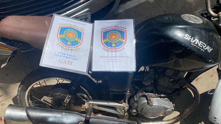 Uma moto foi apreendida pela Polícia Militar na manhã desta quarta-feira (12), na cidade de Pesqueira, no Agreste pernambucano. Policiais do GATI realizavam rondas, quando visualizaram um homem consertando uma moto em frente a uma residência, quando ele viu a viatura correu pra dentro da casa, os policiais realizaram, abordagem e foi constatado que o moto que estava na moto pertencia a uma moto roubada. O homem foi levado com a motocicleta para delegacia de LER NOTÍCIA