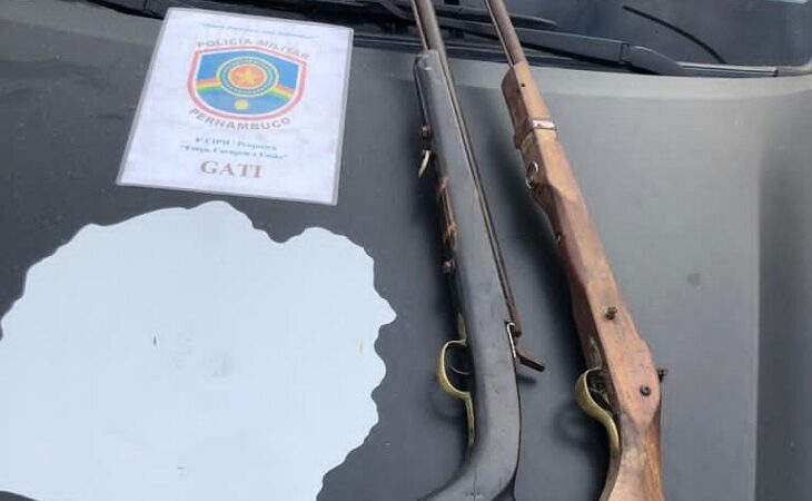 Duas espingardas de fabricação artesanal foram apreendidas pela Polícia Militar, no último sábado (8), na zona rural do município de Pesqueira, no Agreste pernambucano. As armas estavam com dois elementos que conseguiram fugir entrando no mato, as espingardas foram entregues na delegacia de Polícia Civil.