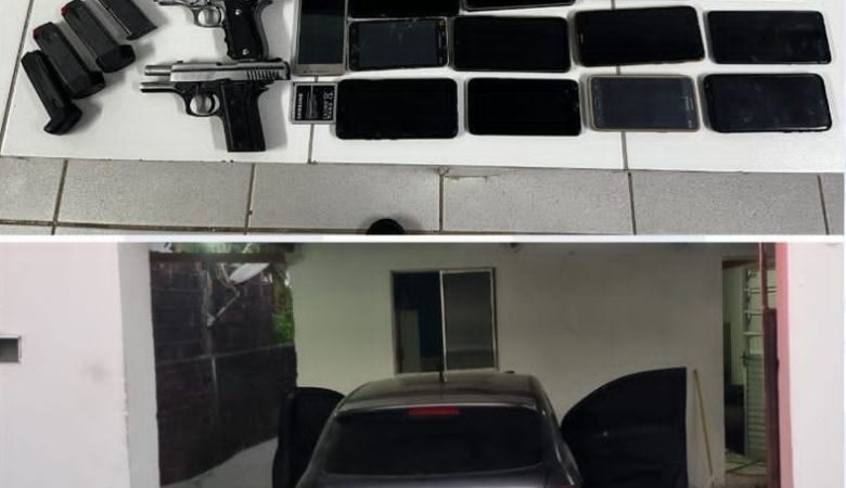Policiais militares do 20º BPM prenderam, quinta-feira (25), dois homens por porte de arma de fogo, veículo e celulares roubados. O efetivo iria dar início à Operação Rolezinho, quando se deparou com populares, no Vale das Pedreiras, em Camaragibe, que informaram sobre o assalto de um Fiat Uno da cor preta. Foram realizadas buscas e os suspeitos foram avistados na Rua General Nilton Cavalcante, em Jardim Primavera. Um deles conseguiu fugir antes da abordagem, mas LER NOTÍCIA