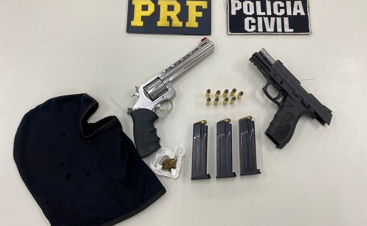 Dois homens suspeitos de praticarem assaltos foram detidos, neste domingo (6), em ação integrada da Polícia Rodoviária Federal (PRF) e Polícia Civil de Pernambuco (PCPE). Eles estavam em um carro roubado e portavam duas armas, 50 munições, uma touca balaclava e uma porção de maconha. O flagrante foi realizado no Km 66 da BR 101, no bairro da Iputinga, na Zona Oeste do Recife. Policiais do Comando de Operações Especiais de Pernambuco (COE-PE) realizavam uma LER NOTÍCIA