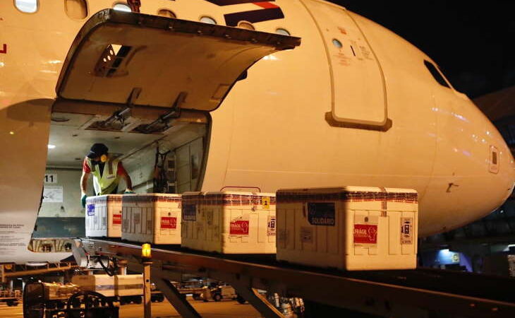 A Polícia Federal coordenou, na noite de ontem, 24/02/2021, com apoio do BPTRAN/PMPE, o desembarque e o transporte de 04 (quatro) caixas contendo 48 mil doses da vacina Coronavac, o imunizante produzido pelo Instituto Butantan (SP) com a farmacêutica chinesa Sinovac, contra o COVID-19, destinadas ao estado de Pernambuco. O imunizante chegou ao aeroporto Internacional dos Guararapes/Gilberto Freire, por volta das 20:05 e foi transportado, sob escolta, para a central de armazenamento de vacinas da LER NOTÍCIA