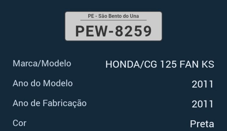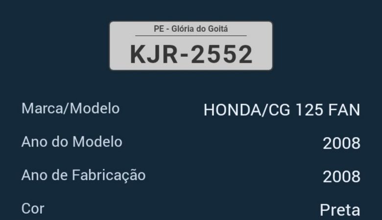 Policiais militares apreenderam uma motocicleta modelo NXR 150 Bros na cor vermelha, com a placa KKW-1060. Ela foi encontrada abandonada no Sítio Água Branca, no município de Jupi/PE, na manhã de sábado, 18. Constava uma queixa de roubo em São Bento do Una referente à placa dela. De acordo com a polícia, uma equipe policial realizava ronda pela zona rural quando avistou o veículo abandonado. Após verificar os dados, foi percebido uma queixa de roubo, LER NOTÍCIA