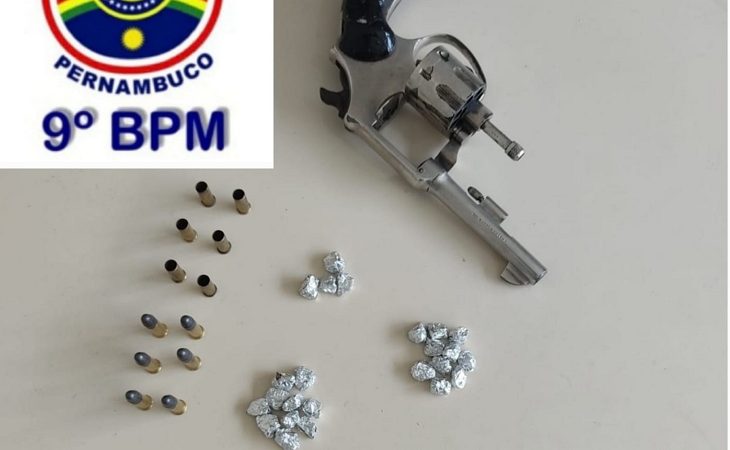 Uma denúncia levou a Polícia Militar a apreender 64 pedras de crack e um revólver, na manhã desta quinta-feira (23), na Rua Alzira Veloso de Oliveira, no municipio de São João, no Agreste de Pernambuco. O Núcleo de Inteligência do 9º BPM recebeu uma denúncia que um homem estava traficando drogas na rua, o elemento quando viu a viatura conseguiu fugir entrando em um matagal, a irmã dele autorizou que fosse realizada uma busca na LER NOTÍCIA