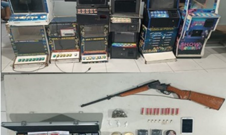 Operação do 14º BPM resulta na apreensão de drogas, armas, munições e nove máquinas caça-níqueis no distrito de Varzinha. Uma ação da Polícia Militar desarticulou, nesta quinta-feira (9), pontos de tráfico de drogas e jogos de azar no distrito de Varzinha, em Serra Talhada, no Sertão de Pernambuco. A operação foi conduzida pelo 14º BPM, após denúncias de comércio de entorpecentes na localidade. Com base em levantamentos do serviço de Inteligência do Batalhão, o efetivo LER NOTÍCIA