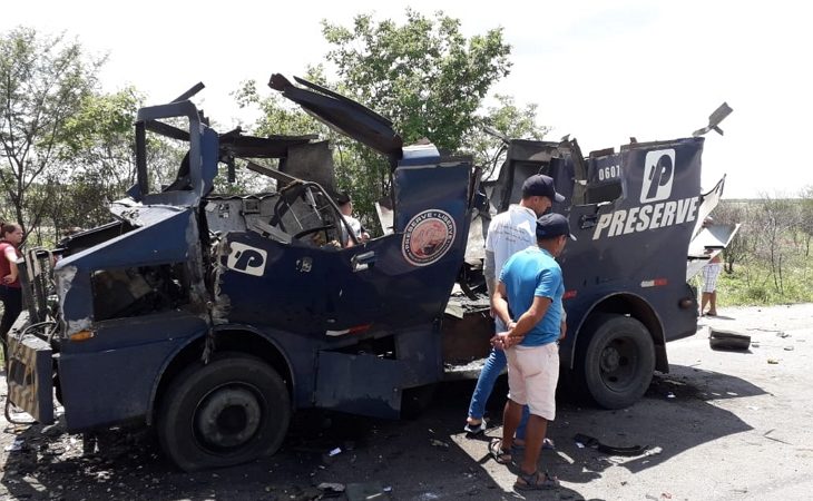 Bandidos fortemente armados explodiram no início da tarde desta quinta-feira (09), na BR-316, um carro forte da empresa de transporte de valores Preserve. Muito dinheiro ficou espalhado pela pista. A ação criminosa aconteceu próximo ao povoado da Quixaba, divisa do município de Parnamirim com Ouricuri, no Sertão de Pernambuco. De acordo com informações de Felisberto Ferreira do Sistema Beto Som, ninguém se feriu e os bandidos após roubarem a dinheiro fugiram em direção a Salgueiro.