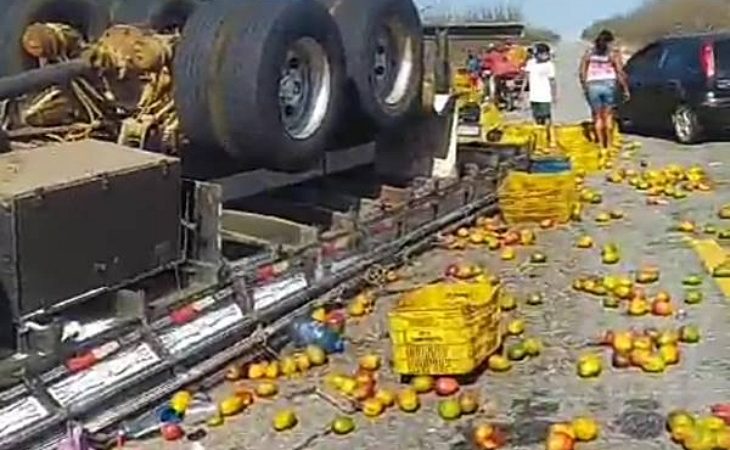 Um caminhão carregado de mangas capotou na manhã desta segunda-feira (7) na PE-360 em Floresta , Sertão de Pernambuco. De acordo com informações repassadas o motorista do caminhão morreu na hora esmagado dentro da cabine. A carga foi saqueada por populares. As causas do acidente estão sendo investigadas, mas uma das causas mais prováveis é que um buraco na pista tenha colaborado com a tragédia. A rodovia, que liga os municípios de Floresta a Ibimirim, LER NOTÍCIA