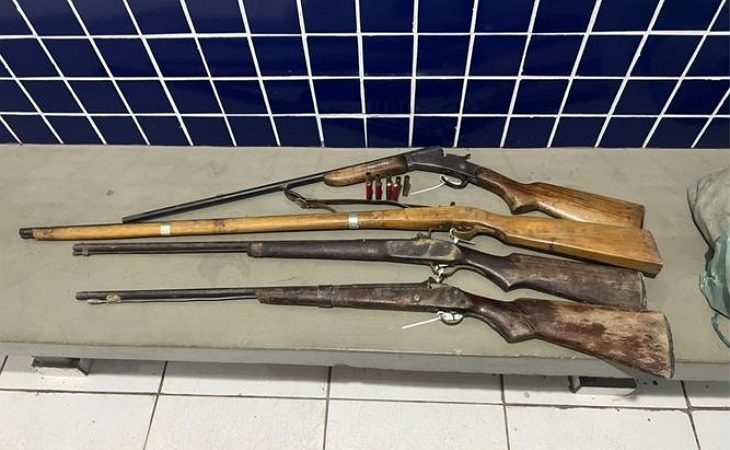 Policiais militares do 7º BPM realizaram apreensão de armas de caça predatória, quarta-feira (2), no distrito de Serra Mata Grande, na zona rural de Moreilândia, no Sertão pernambucano. Mesmo negando o crime ambiental, dois homens foram presos com uma espingarda industrial com nove munições e três espingardas artesanais. Eles foram apresentados na Delegacia de Polícia local, para adoção das medidas previstas.