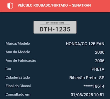 Veículo tinha chassi e motor modificados; ocorrência foi registrada no sábado (30/8) no Engenho Capricho Um homem de 33 anos foi detido pela Polícia Militar neste sábado (30/8) no Engenho Capricho, zona rural de Palmares, na Mata Sul de Pernambuco, por adulteração de veículo. Durante a consulta, os policiais constataram adulteração no número do motor, onde um dígito havia sido alterado. Ao corrigir a informação, foi identificado que o veículo correspondia a uma moto de LER NOTÍCIA