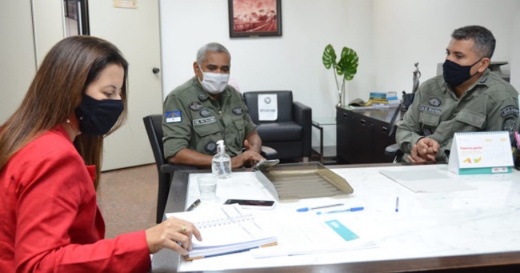 O Ministério Público de Pernambuco (MPPE) realizou reunião na tarde desta terça-feira, 27, com representantes da Diretoria de Articulação Social e Direitos Humanos (DASDH) da Polícia Militar de Pernambuco (PMPE) com o objetivo de estabelecer parcerias institucionais para ativação de medidas para coibir, em todo o Estado, a violência contra a mulher. Participaram do encontro o procurador-geral de Justiça, Paulo Augusto Freitas; a promotora de Justiça e coordenadora do Núcleo de Apoio à Mulher (NAM), Bianca Stella Azevedo; o coronel e diretor da DASH, Alexandre Tavares; e o tenente-coronel da PMPE, Alessandro Oliveira.
