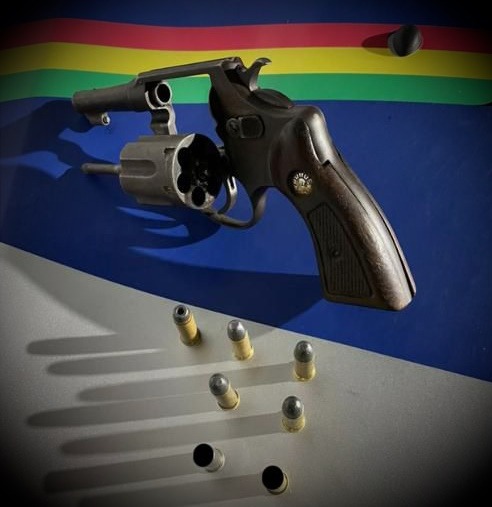 Com o apoio de outras guarnições, as buscas foram intensificadas, resultando na apreensão de um revólver calibre 38 com capacidade para seis munições, contendo duas munições deflagradas e quatro intactas, além da munição encontrada no veículo, totalizando sete munições.