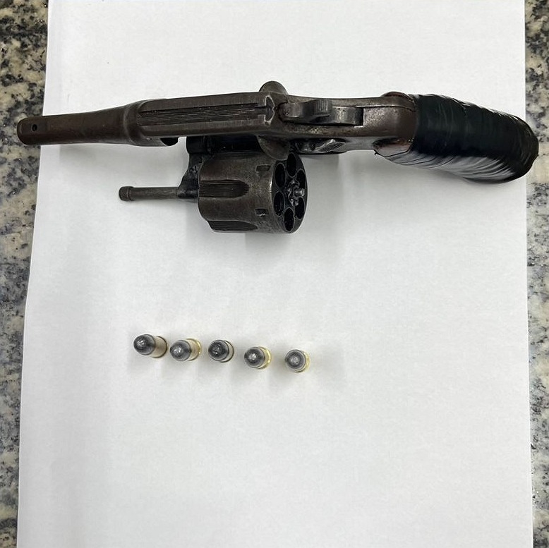 Com eles, foram apreendidos um revólver calibre 38, com cinco munições não deflagradas, e um veículo HB20.
